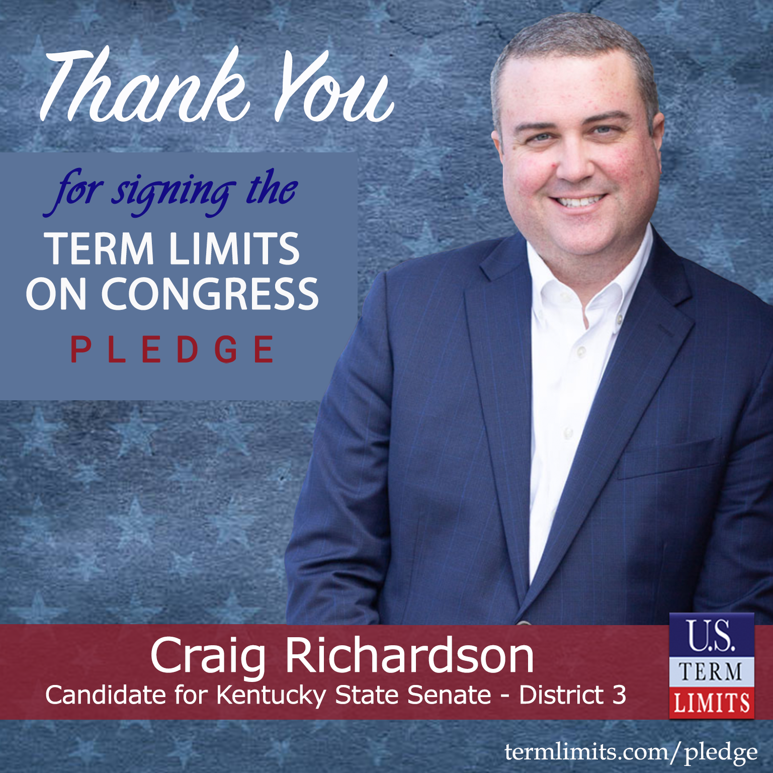 Hopkinsville, KY – U.S. Term Limits (USTL), the leader in the national, non-partisan movement to limit terms for elected officials, is gathering support from state lawmakers across the nation. Its mission is to get 34 states to apply for an amendment proposal convention specific to term limits on Congress. Kentucky state senate candidate, Craig Richardson (district 3), has committed support for term limits on Congress by signing the term limits convention pledge.