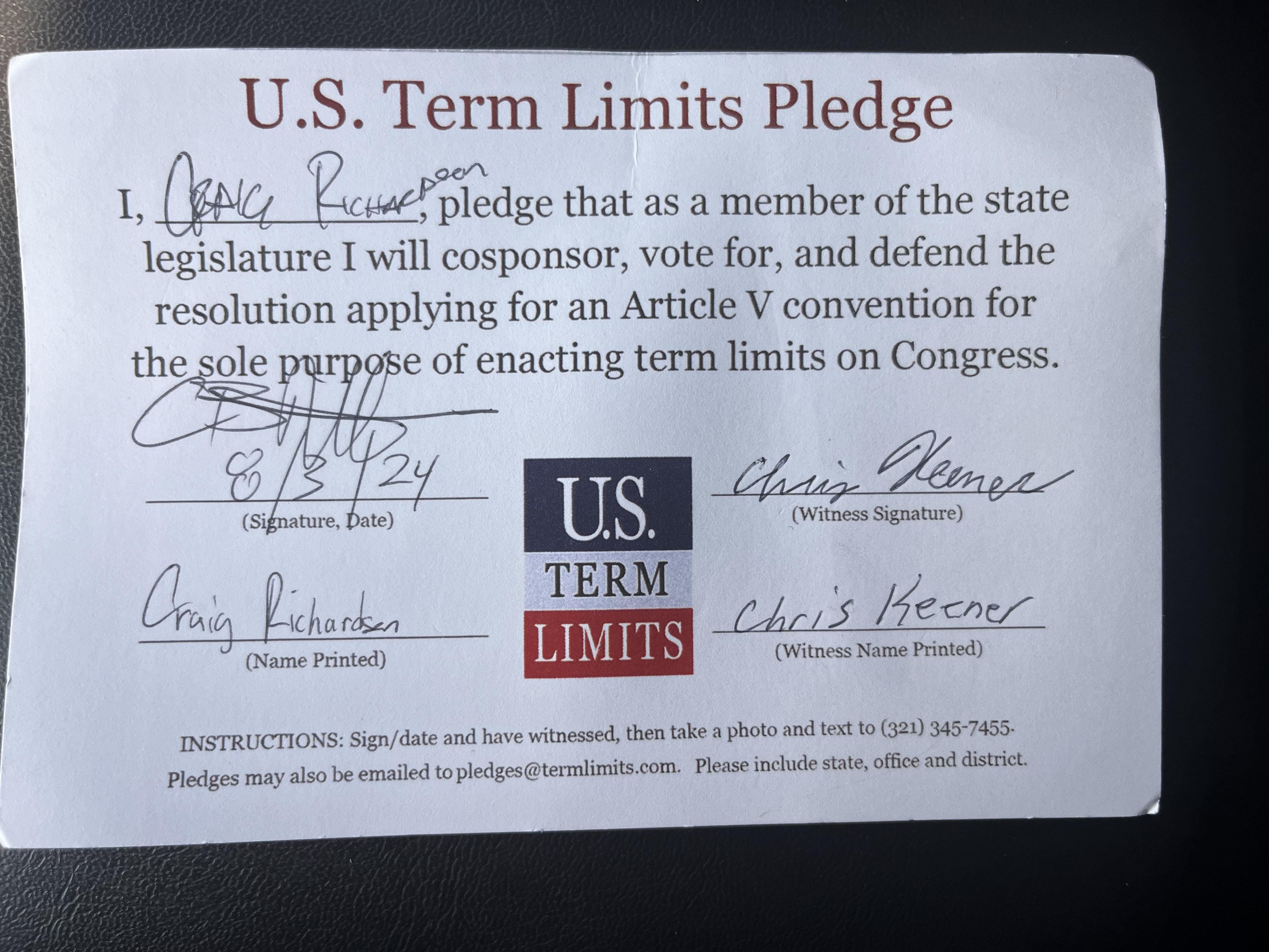 Craig Richardson Pledges to Support Congressional Term Limits