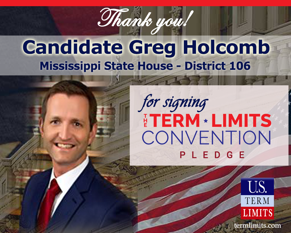 The U.S. Term Limits pledge is provided to candidates and members of state legislatures. It reads, “I pledge that, as a member of the state legislature, I will cosponsor, vote for, and defend the resolution applying for an Article V convention for the limited purpose of enacting term limits on Congress.”