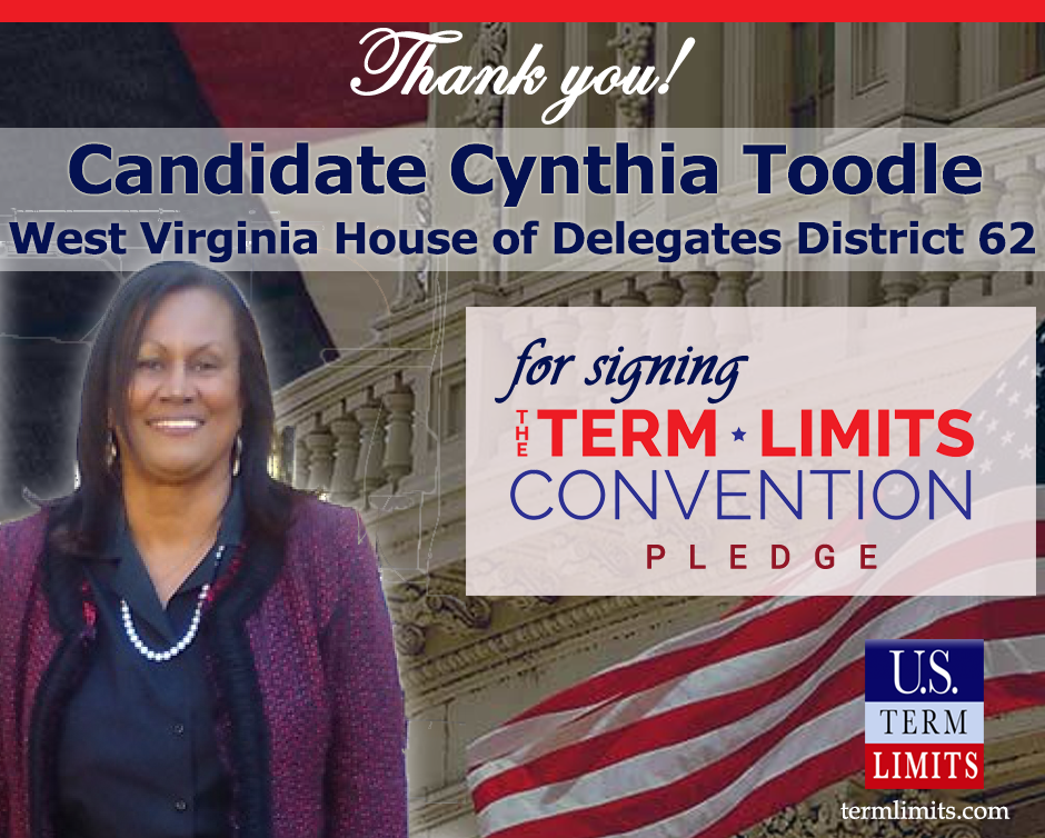 Washington, D.C. – U.S. Term Limits (USTL), the leader in the national, non-partisan movement to limit terms for elected officials, is gathering support from state lawmakers across the nation. Its mission is to get 34 states to apply for an amendment proposal convention specific to term limits on Congress. West Virginia House of Delegates candidate Cynthia Toodle, district 62, has committed support for term limits on Congress by signing the Term Limits Convention pledge.