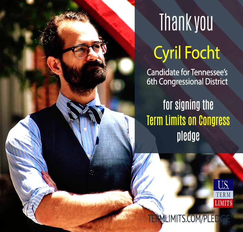 Washington D.C. – U.S. Term Limits (USTL), the leader in the non-partisan national movement to limit terms for elected officials, praises 2024 U.S. House candidate for Tennessee, Cyril Focht (District 6), for signing the pledge for an amendment to term limit Congress. Focht is the first signer in this race.