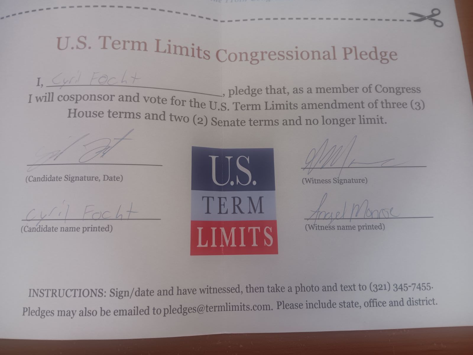 U.S. Term Limits has the support of more than 130 pledge signers in Congress. USTL President Philip Blumel commented on Focht’s pledge saying, “Cyril’s strong support of term limits shows that there are individuals who are willing to put self-interest aside to follow the will of the people. America needs a Congress that will be served by citizen legislators, not career politicians.”