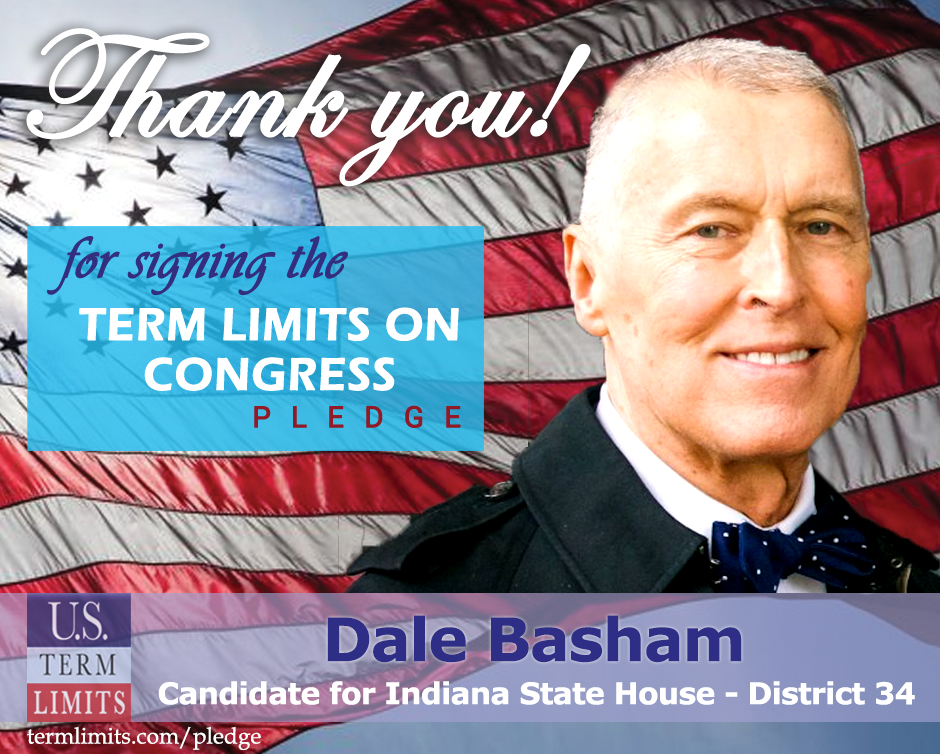 Muncie, IN – U.S. Term Limits (USTL), the leader in the national, non-partisan movement to limit terms for elected officials, is gathering support from state lawmakers across the nation. Its mission is to get 34 states to apply for an amendment proposal convention specific to term limits on Congress. Indiana state house candidate, Dale Basham (district 34), has committed support for term limits on Congress by signing the U.S. Term Limits pledge.