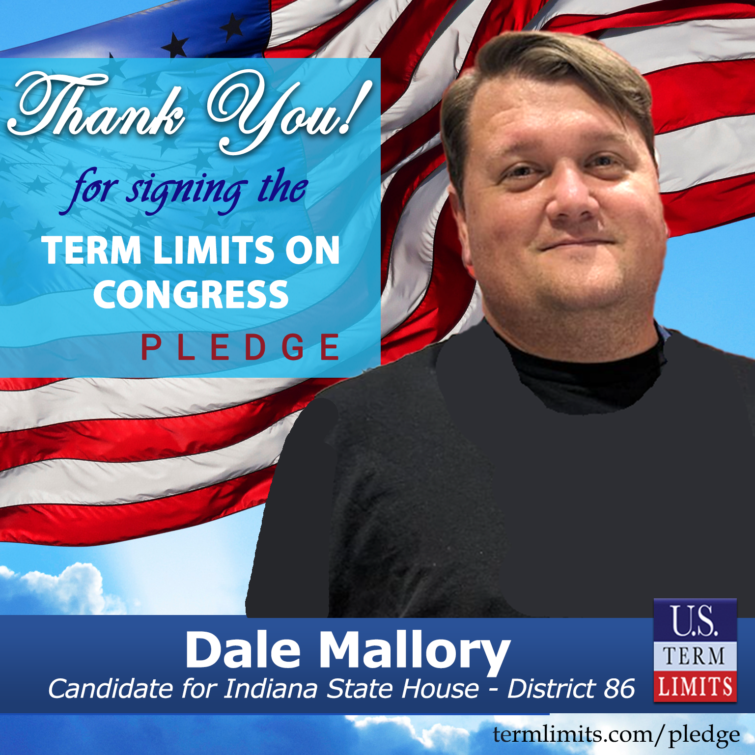 Traders Point, IN – U.S. Term Limits (USTL), the leader in the national, non-partisan movement to limit terms for elected officials, is gathering support from state lawmakers across the nation. Its mission is to get 34 states to apply for an amendment proposal convention specific to term limits on Congress. Indiana state house candidate, Dale Mallory (District 86), has committed support for term limits on Congress by signing the term limits convention pledge. Mallory is the first signer in this race.