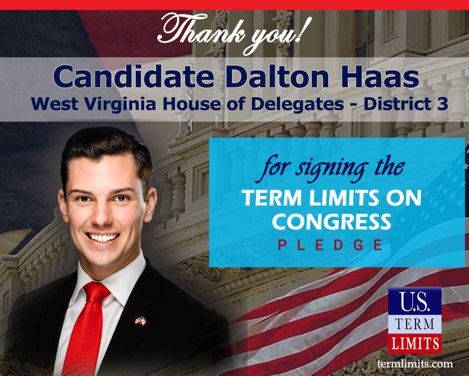 Washington, D.C. – U.S. Term Limits (USTL), the leader in the national, non-partisan movement to limit terms for elected officials, is gathering support from state lawmakers across the nation. Its mission is to get 34 states to apply for an amendment proposal convention specific to term limits on Congress. 2020 West Virginia house of delegates candidate Dalton Haas (district 3), has committed support for term limits on Congress by signing the Term Limits Convention pledge. Haas is the first signer in this race. The primary election is scheduled for May 12, 2020.