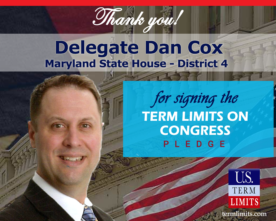 Washington, D.C. – U.S. Term Limits (USTL), the leader in the national, non-partisan movement to limit terms for elected officials, is gathering support from state lawmakers across the nation. Its mission is to get 34 states to apply for an amendment proposal convention specific to term limits on Congress. Maryland state house Delegate Dan Cox, (district 4), has committed support for term limits on Congress by signing the Term Limits Convention pledge.