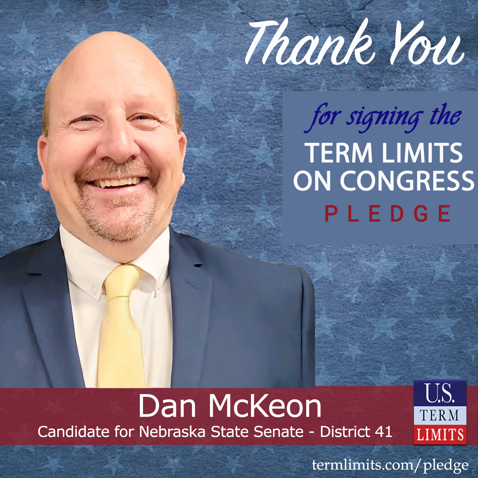 Lincoln, NE – U.S. Term Limits (USTL), the leader in the national, non-partisan movement to limit terms for elected officials, is gathering support from state lawmakers across the nation. Its mission is to get 34 states to apply for an amendment proposal convention specific to term limits on Congress. Nebraska state senate candidate, Dan McKeon (District 41), has committed support for term limits on Congress by signing the term limits convention pledge. Previously, candidates Ethan Clark, Nadine Bane, and incumbent Senator Fred Meyer also signed the pledge.