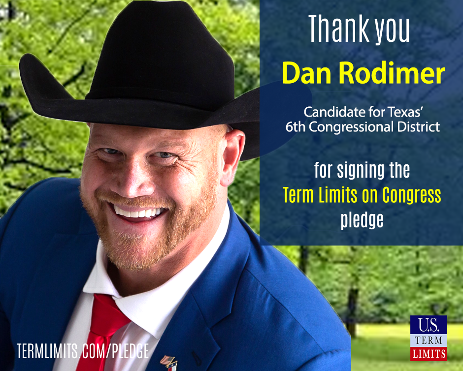 Washington D.C. – U.S. Term Limits (USTL), the leader in the non-partisan national movement to limit terms for elected officials, praises 2021 U.S. house candidate for Texas, Dan Rodimer (district 6), for signing the pledge for an amendment to term limit Congress. Previously, candidates Jake Ellzey, Michael Wood , Susan Wright, Mike Egan and Jana Lynne Sanchez also signed the pledge. The special general election is scheduled for May 1, 2021.