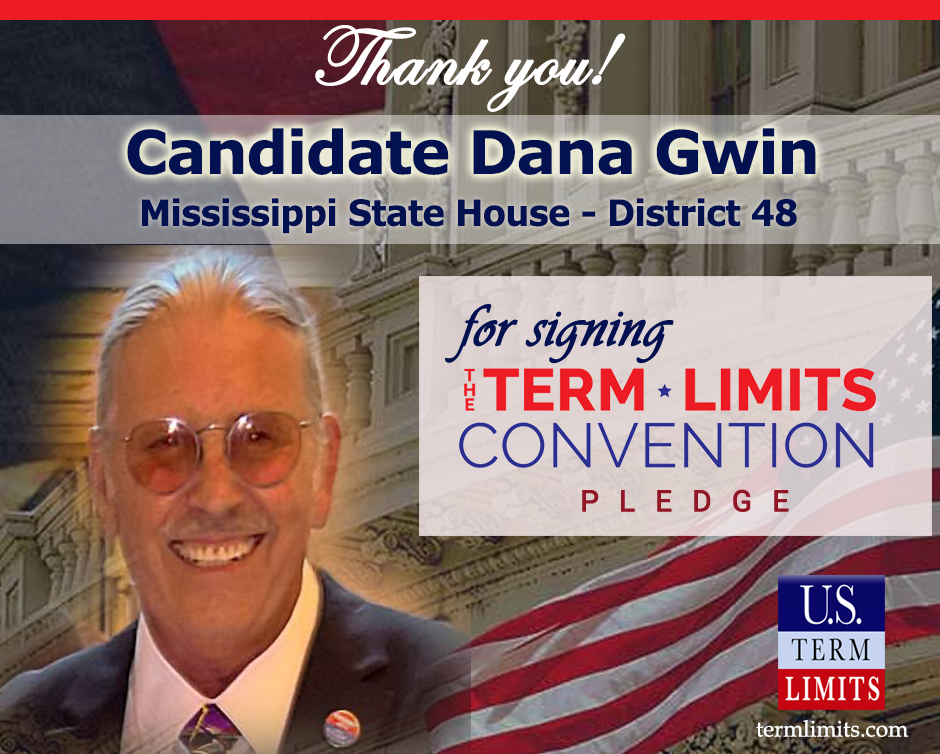 Washington, D.C. – U.S. Term Limits (USTL), the leader in the national, non-partisan movement to limit terms for elected officials, is gathering support from state lawmakers across the nation. Its mission is to get 34 states to apply for an amendment proposal convention specific to term limits on Congress. Mississippi state house candidate, Dana Gwin (district 48) committed support for term limits on Congress by signing the term limits convention pledge.