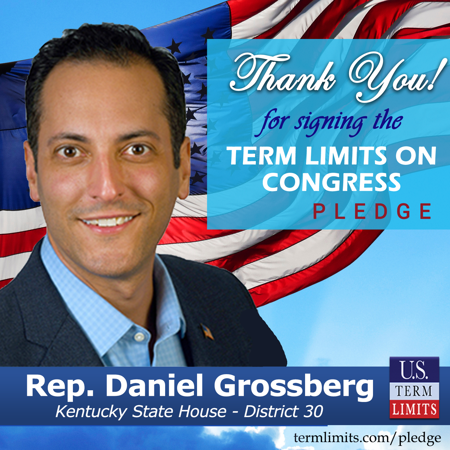 West Buechel, KY – U.S. Term Limits (USTL), the leader in the national, non-partisan movement to limit terms for elected officials, is gathering support from state lawmakers across the nation. Its mission is to get 34 states to apply for an amendment proposal convention specific to term limits on Congress. Kentucky state house Rep. Daniel Grossberg (District 30), has committed support for term limits on Congress by signing the term limits convention pledge.