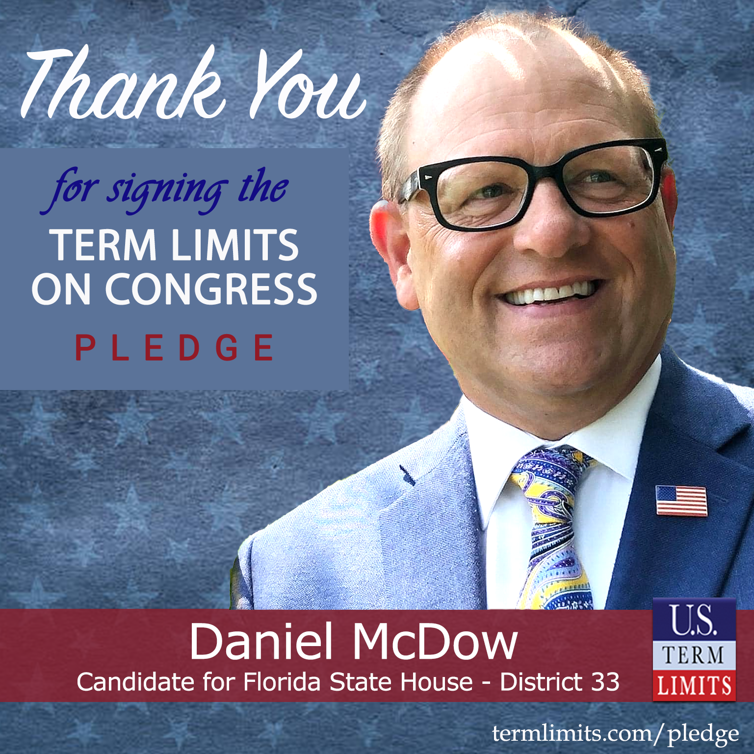 Palm Bay, FL – U.S. Term Limits (USTL), the leader in the national, non-partisan movement to limit terms for elected officials, is gathering support from state lawmakers across the nation. Its mission is to get 34 states to apply for an amendment proposal convention specific to term limits on Congress. 2026 Florida state house candidate, Daniel McDow (district 33), has committed support for term limits on Congress by signing the term limits convention pledge.