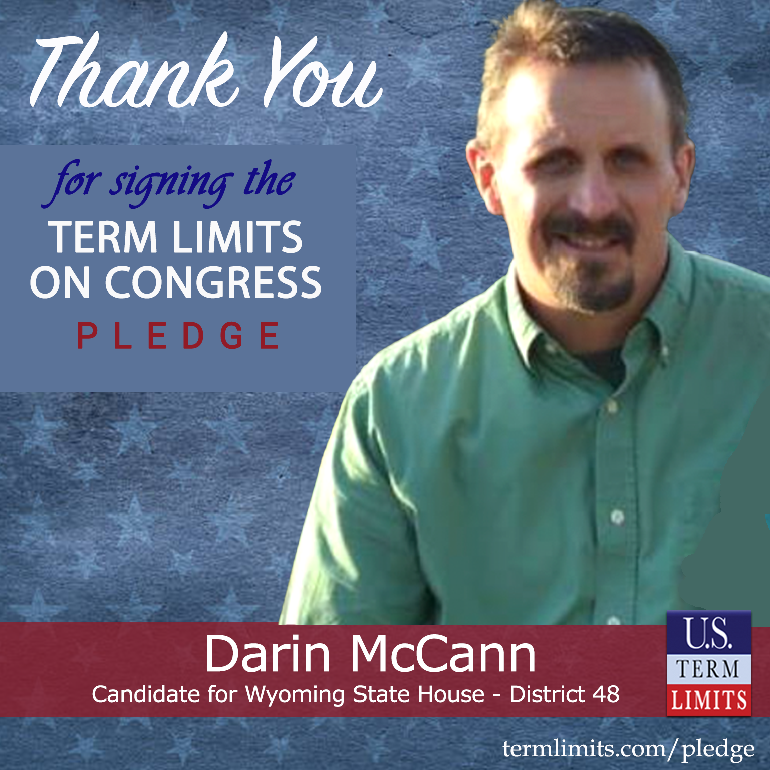 Rock Springs, WY – U.S. Term Limits (USTL), the leader in the national, non-partisan movement to limit terms for elected officials, is gathering support from state lawmakers across the nation. Its mission is to get 34 states to apply for an amendment proposal convention specific to term limits on Congress. Wyoming state house candidate, Darin McCann (district 48), has committed support for term limits on Congress by signing the term limits convention pledge. He is the first signer in this race.