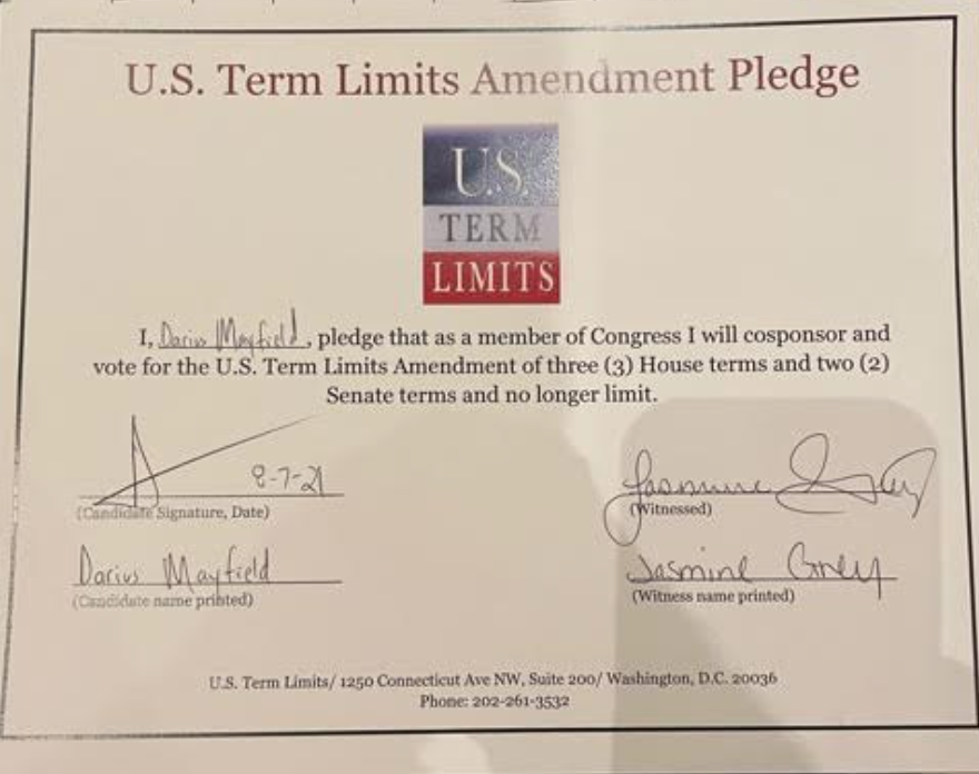 Darius Mayfield Pledges to Support Term Limits on Congress