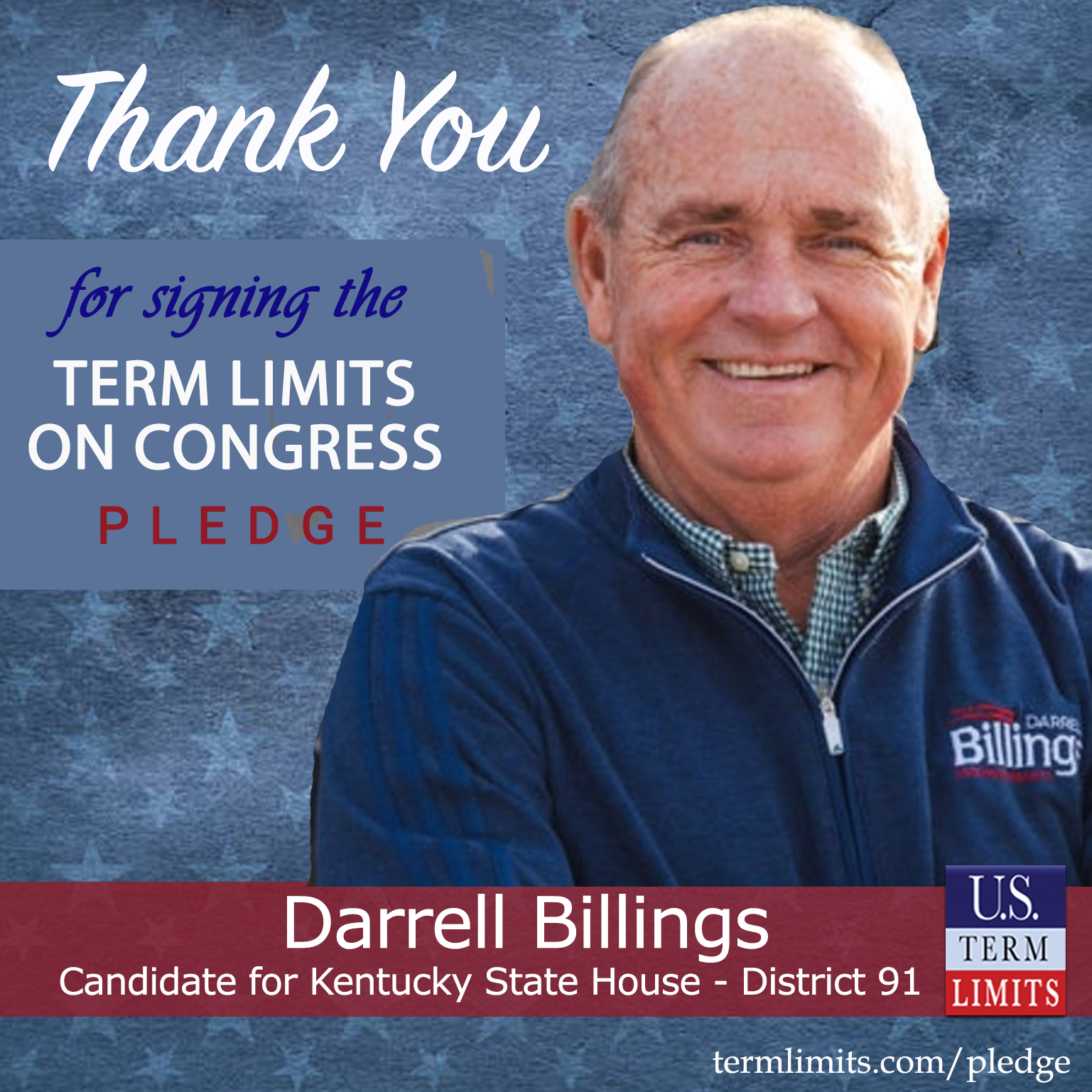 USTL President, Philip Blumel, commented on Billings’s pledge saying, “Darrell’s strong support of term limits shows that there are individuals who are willing to listen to the majority of voters who want term limits. America needs a Congress that will be served by citizen legislators, not career politicians.”