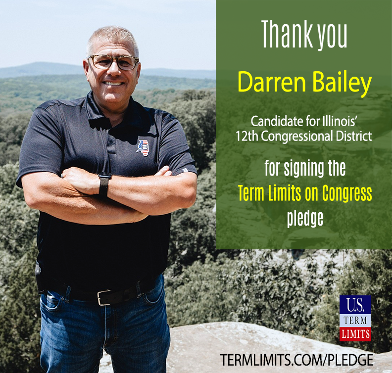 Washington D.C. – U.S. Term Limits (USTL), the leader in the non-partisan national movement to limit terms for elected officials, praises 2024 U.S. House candidate for Illinois, Darren Bailey (District 12), for signing the pledge for an amendment to term limit Congress. Bailey is the first signer in this race.