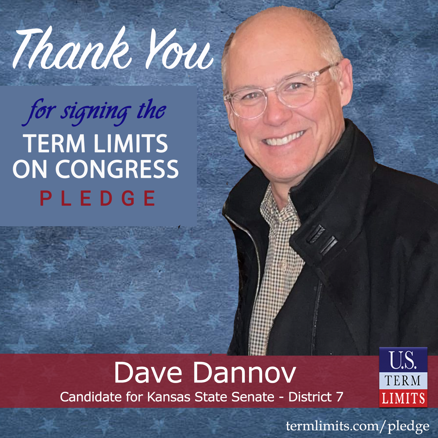 State Chair for U.S. Term Limits, Sarah Weir says, “I am thankful that Dave Dannov signed the pledge calling for term limits on Congress. With his support, we will add Kansas to the growing list of states dedicated to implementing term limits on Congress.”