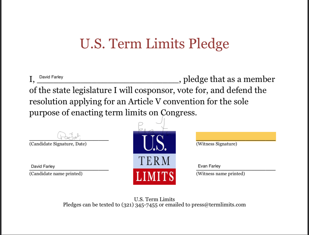Dave Farley Pledges to Support Congressional Term Limits