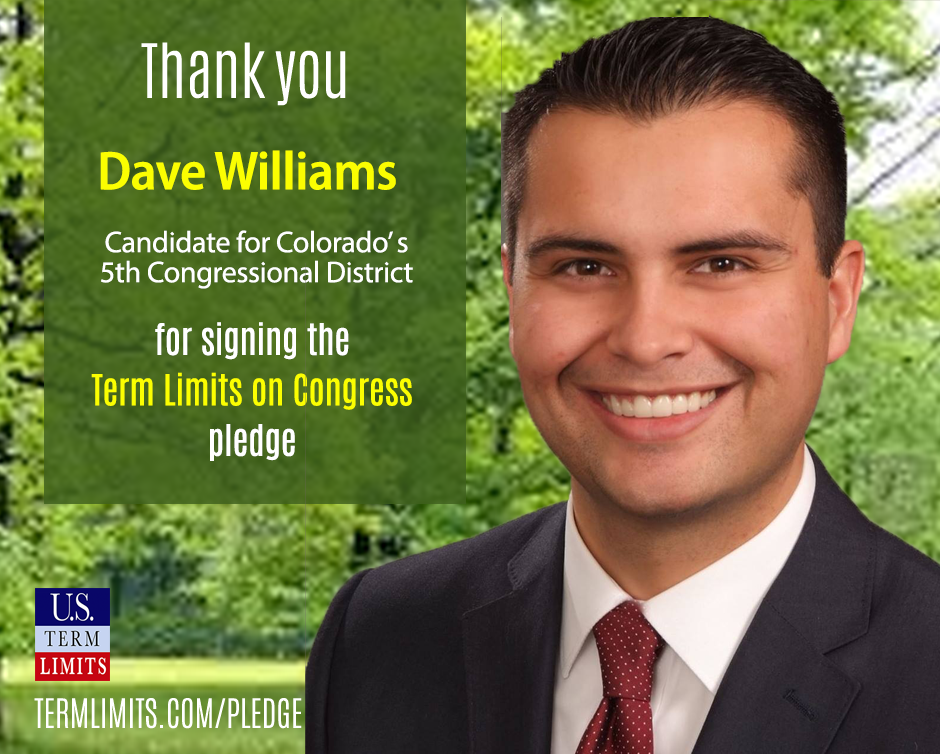 Washington D.C. – U.S. Term Limits (USTL), the leader in the non-partisan national movement to limit terms for elected officials, praises 2022 U.S. senate candidate for Colorado, Dave Williams (district 5), for signing the pledge for an amendment to term limit Congress. Williams is the first signer in this race. The primary election is scheduled for June 28, 2022.
