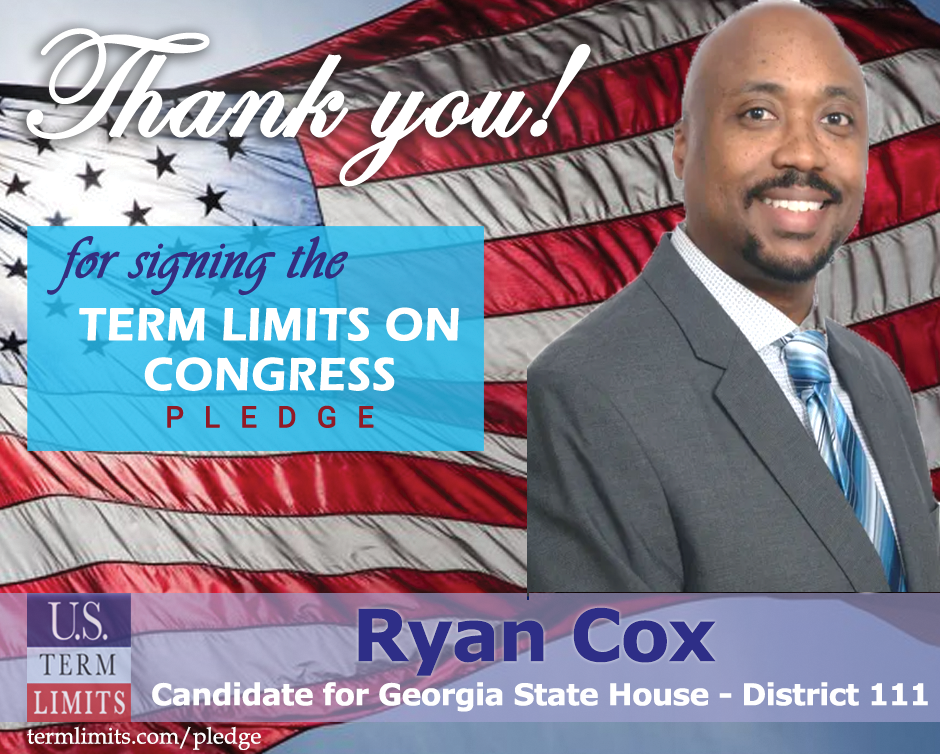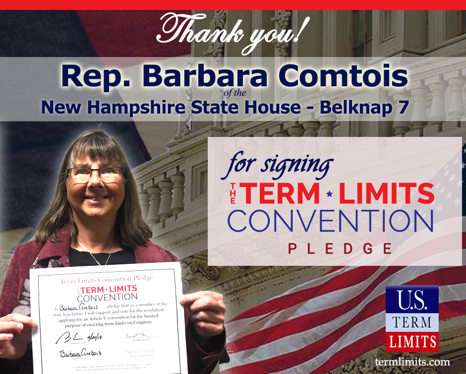 The U.S. Term Limits pledge is provided to candidates and members of state legislatures. It reads, “I pledge that, as a member of the state legislature, I will cosponsor, vote for, and defend the resolution applying for an Article V convention for the limited purpose of enacting term limits on Congress.”