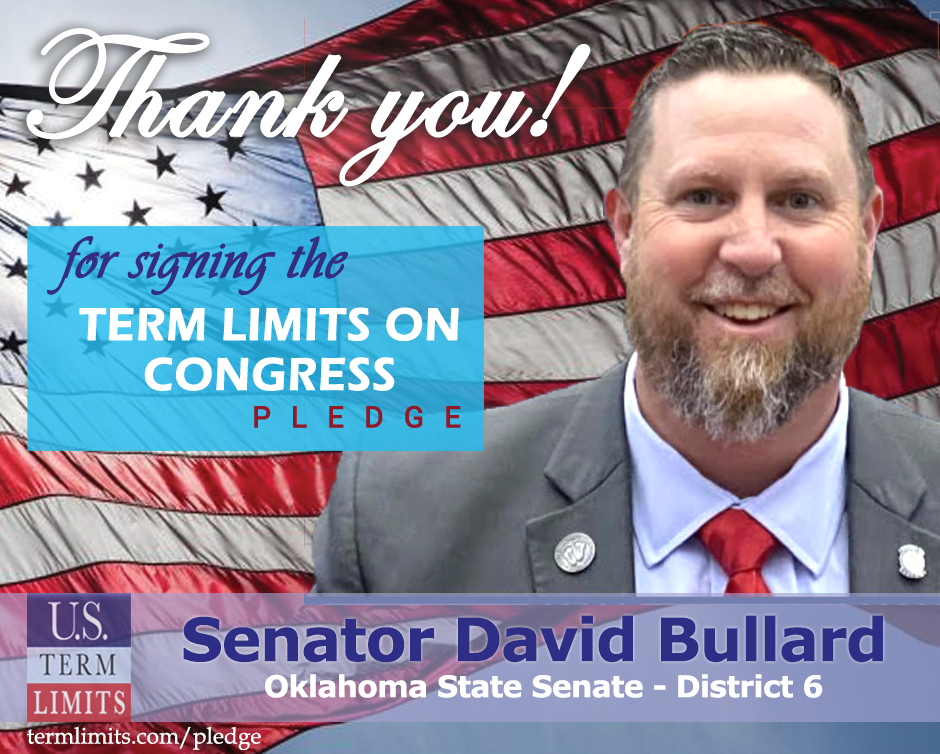 Edmond, OK – U.S. Term Limits (USTL), the leader in the national, non-partisan movement to limit terms for elected officials, is gathering support from state lawmakers across the nation. Its mission is to get 34 states to apply for an amendment proposal convention specific to term limits on Congress. Oklahoma state Senator David Bullard (district 6) has committed support for term limits on Congress by signing the Term Limits Convention pledge.