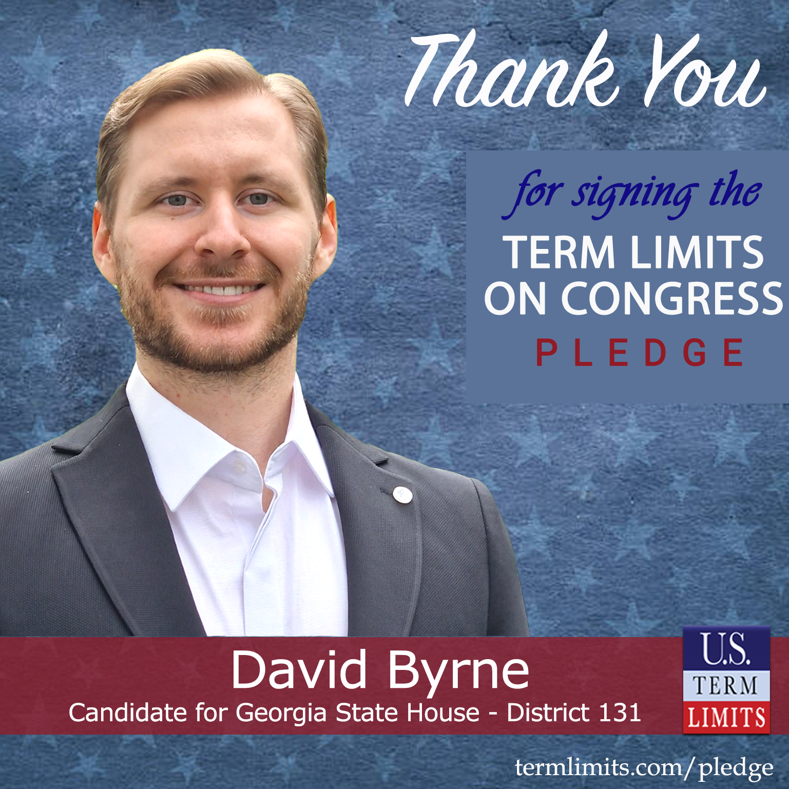 Evans, GA – U.S. Term Limits (USTL), the leader in the national, non-partisan movement to limit terms for elected officials, is gathering support from state lawmakers across the nation. Its mission is to get 34 states to apply for an amendment proposal convention specific to term limits on Congress. Georgia state house candidate, David Byrne (District 131), has committed support for term limits on Congress by signing the Term Limits Convention Pledge. Previously, candidate Russell Wilder also signed the pledge.