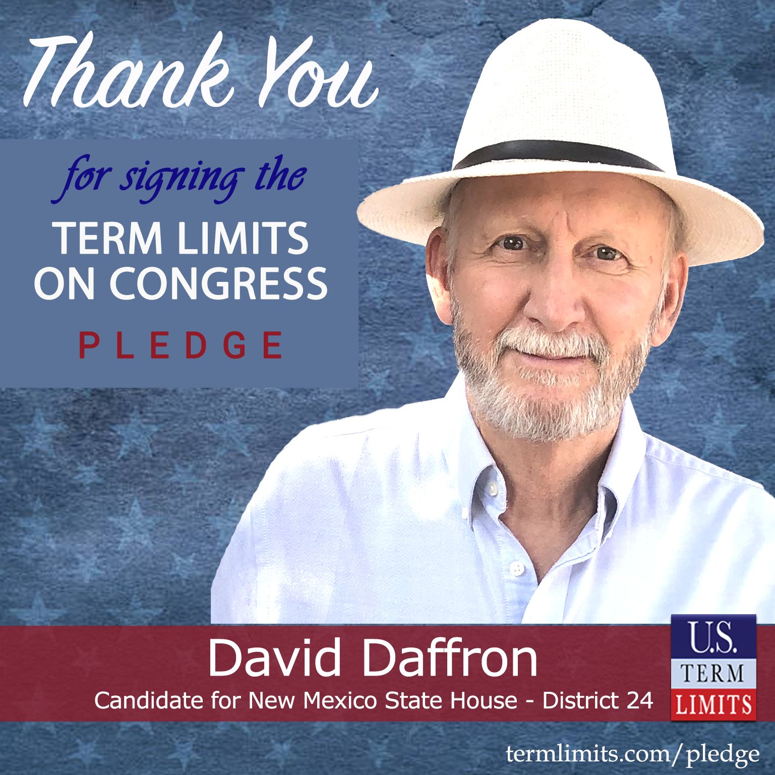 Albuquerque, NM – U.S. Term Limits (USTL), the leader in the national, non-partisan movement to limit terms for elected officials, is gathering support from state lawmakers across the nation. Its mission is to get 34 states to apply for an amendment proposal convention specific to term limits on Congress. New Mexico state house candidate, David Daffron (district 24), has committed support for term limits on Congress by signing the term limits convention pledge.