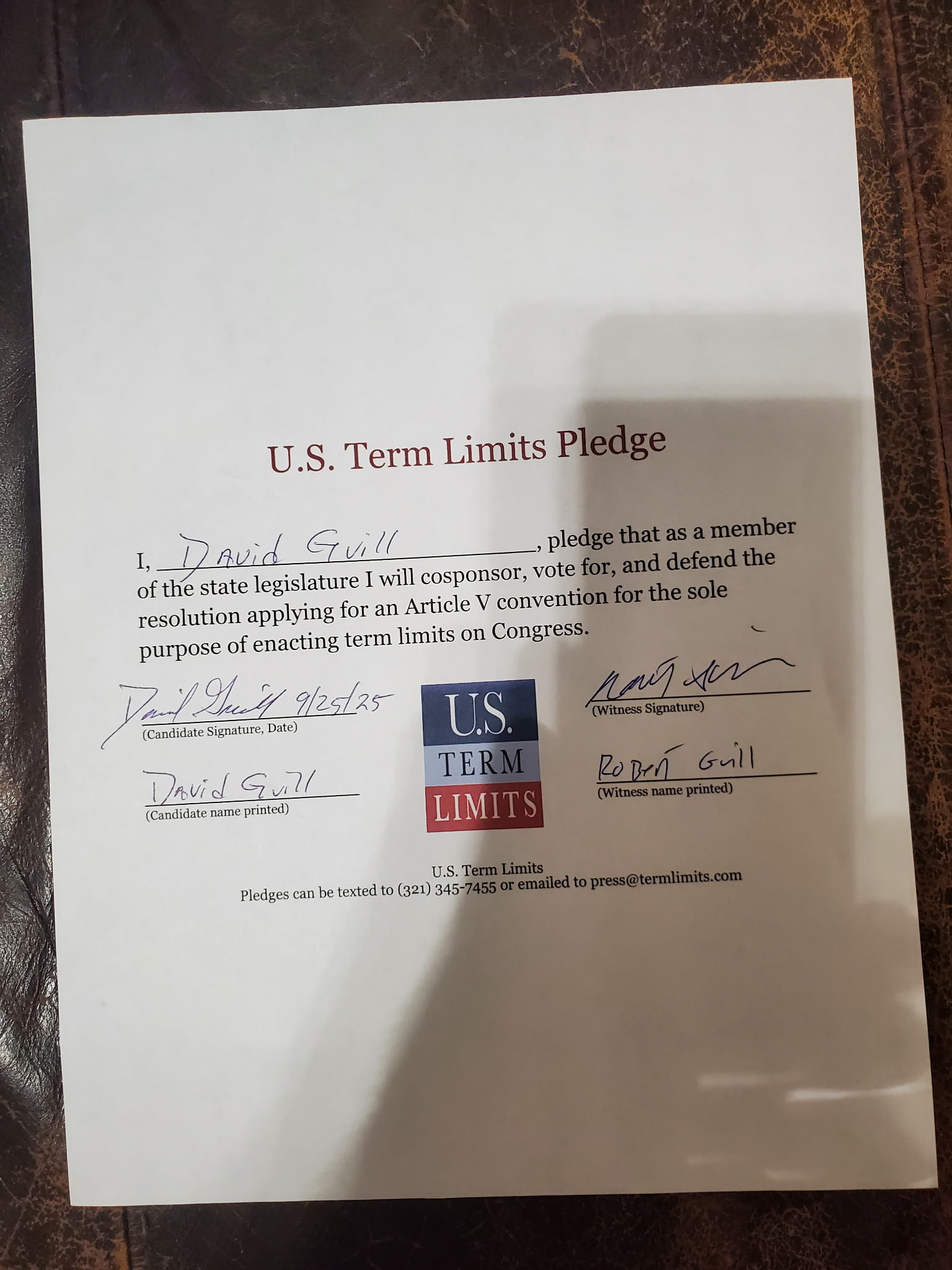 David Guill Pledges to Support Congressional Term Limits