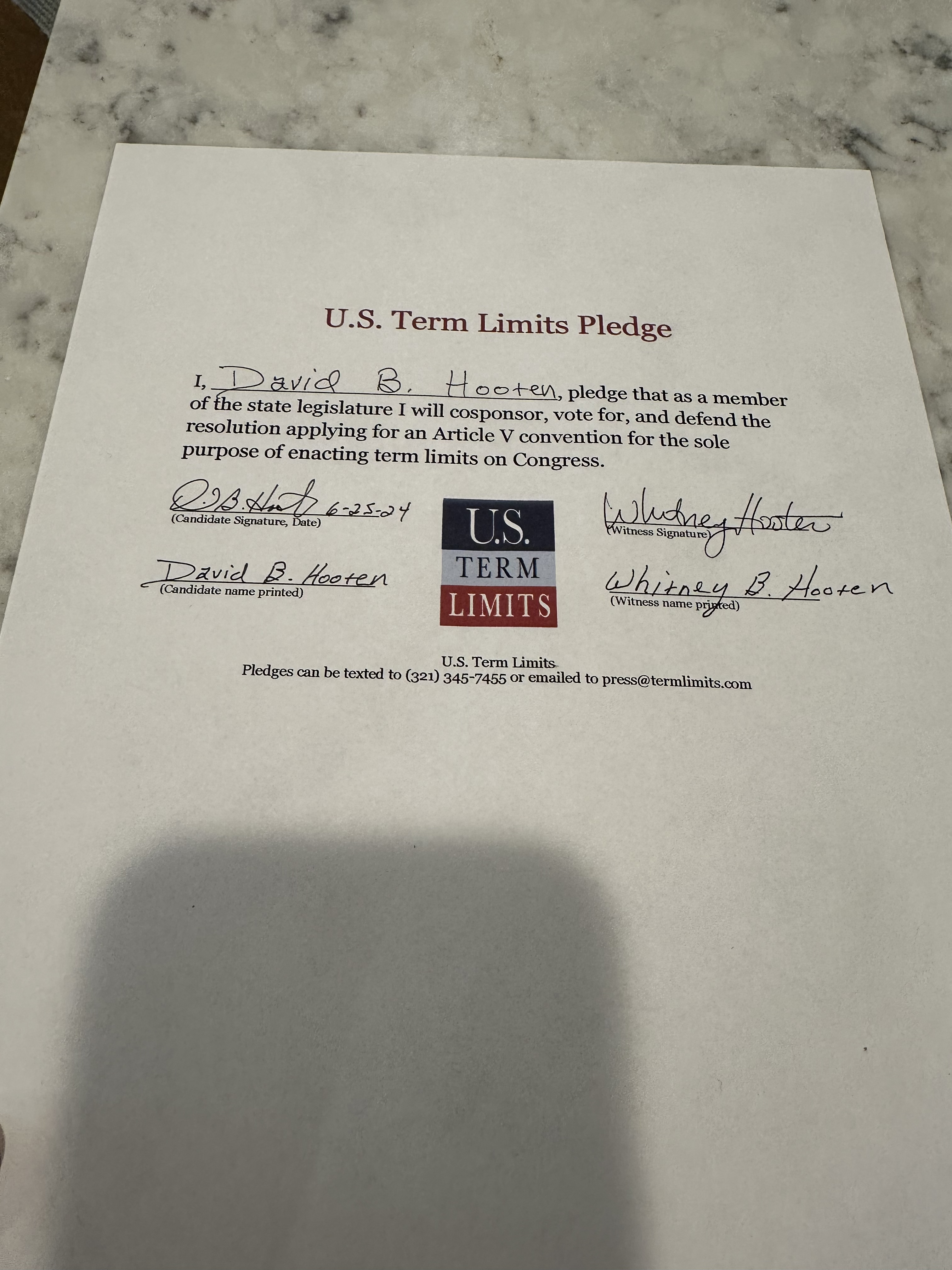 David Hooten Pledges to Support Congressional Term Limits
