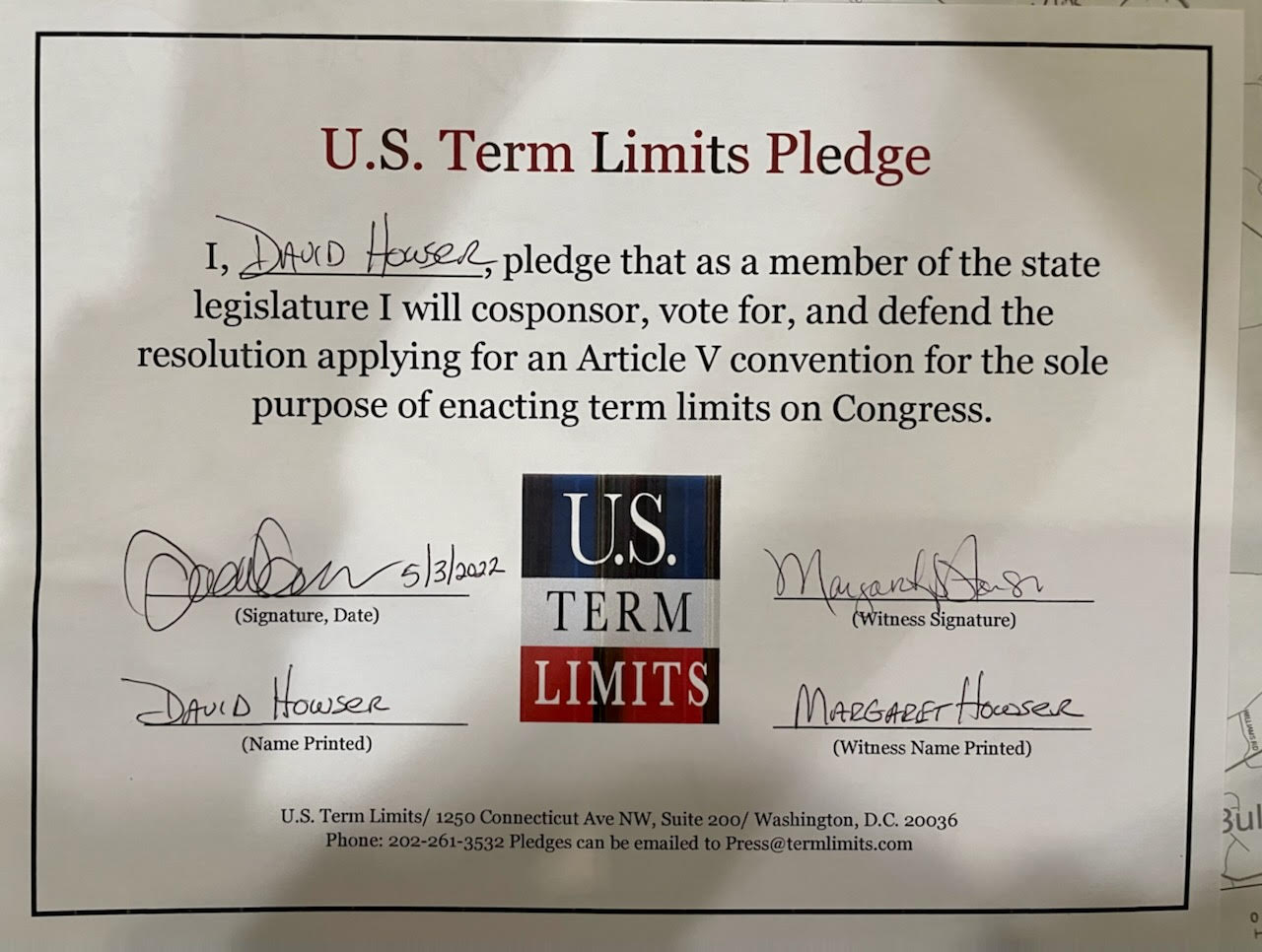 Lexington, KY – U.S. Term Limits (USTL), the leader in the national, non-partisan movement to limit terms for elected officials, is gathering support from state lawmakers across the nation. Its mission is to get 34 states to apply for an amendment proposal convention specific to term limits on Congress. Kentucky state house candidate, David Howser (district 36), has committed support for term limits on Congress by signing the Term Limits Convention pledge. Howser is the first signer in this race.