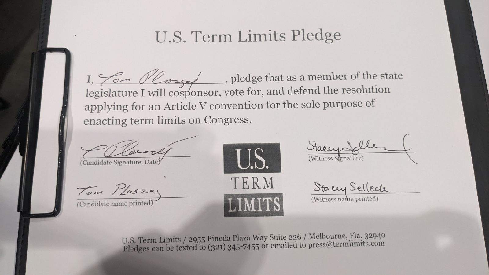 The U.S. Term Limits pledge is provided to candidates and members of state legislatures. It reads, “I pledge that, as a member of the state legislature, I will cosponsor, vote for, and defend the resolution applying for an Article V convention for the sole purpose of enacting term limits on Congress.”
