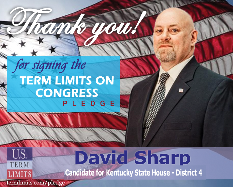 Clarksville, KY – U.S. Term Limits (USTL), the leader in the national, non-partisan movement to limit terms for elected officials, is gathering support from state lawmakers across the nation. Its mission is to get 34 states to apply for an amendment proposal convention specific to term limits on Congress. Kentucky state house candidate, David Sharp (district 4), has committed support for term limits on Congress by signing the Term Limits Convention pledge. Sharp is the first signer in this race.