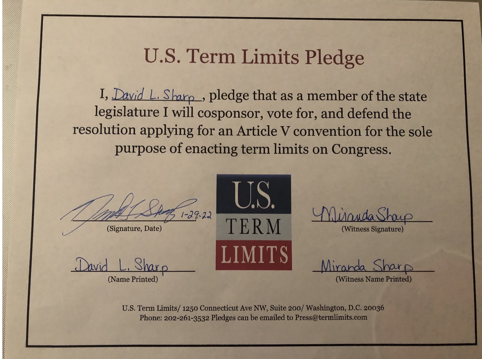 USTL President, Philip Blumel, commented on Sharp’s pledge saying, “David’s support of term limits shows that there are individuals who are willing to listen to the majority of voters who want term limits. America needs a Congress that will be served by citizen legislators, not career politicians.”