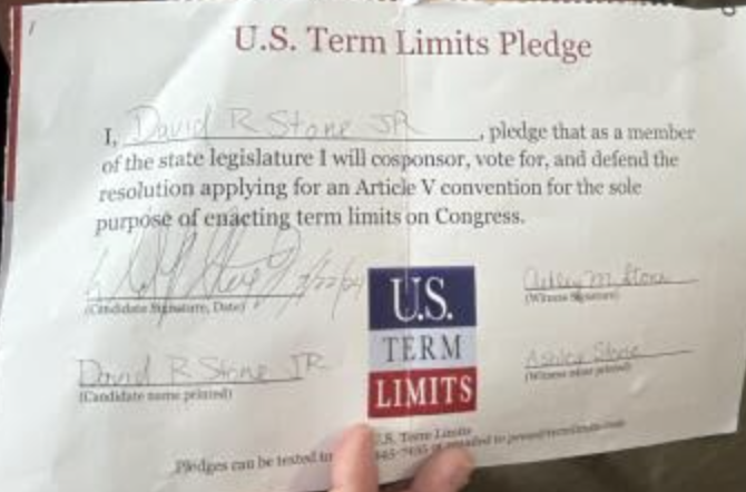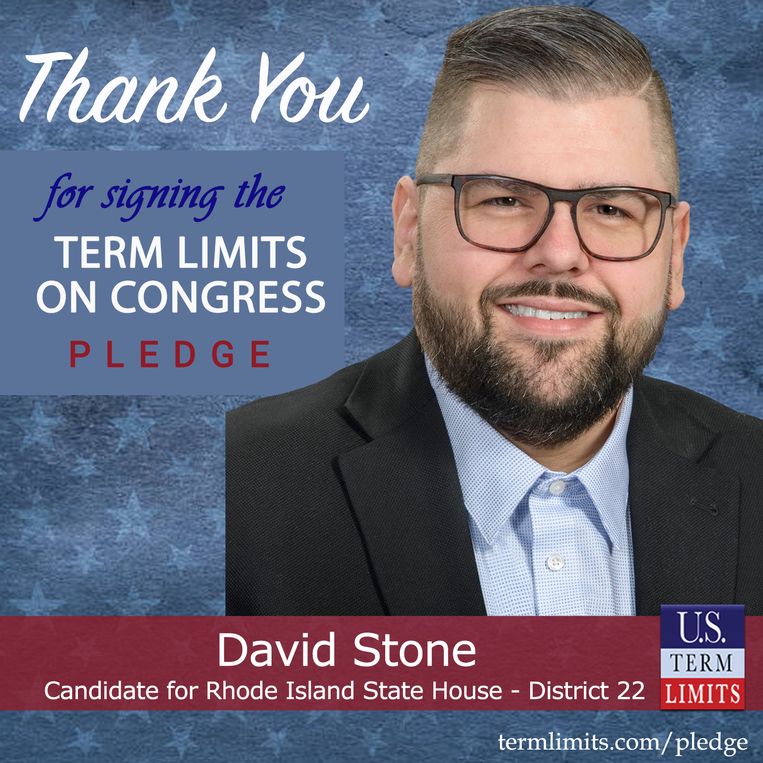 Warwick, RI – U.S. Term Limits (USTL), the leader in the national, non-partisan movement to limit terms for elected officials, is gathering support from state lawmakers across the nation. Its mission is to get 34 states to apply for an amendment proposal convention specific to term limits on Congress. Rhode Island state house candidate, David Stone (district 22), has committed support for term limits on Congress by signing the term limits convention pledge. He is the first signer in this race.