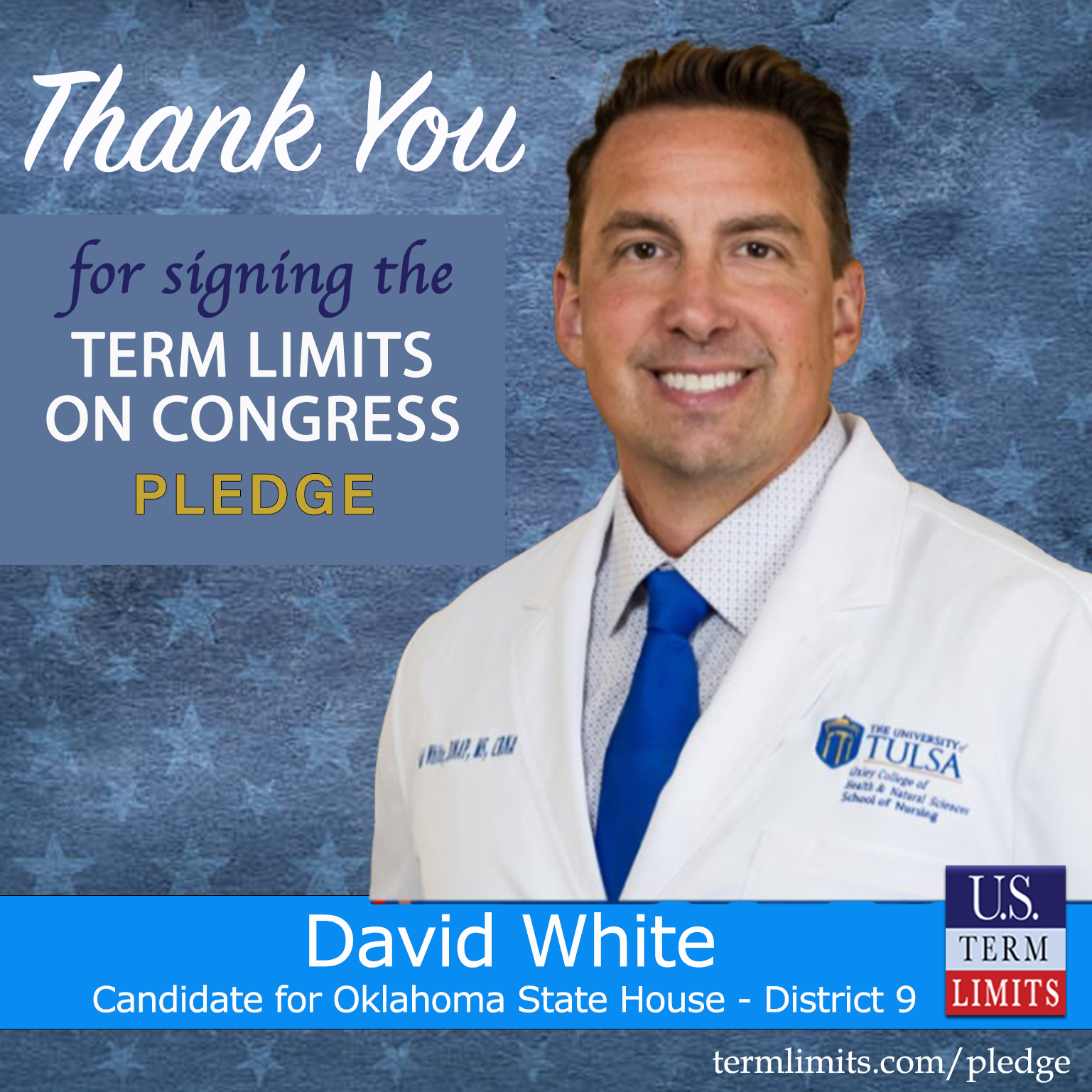 Claremore, OK – U.S. Term Limits (USTL), the leader in the national, non-partisan movement to limit terms for elected officials, is gathering support from state lawmakers across the nation. Its mission is to get 34 states to apply for an amendment proposal convention specific to term limits on Congress. 2026 Oklahoma state house candidate, David White (district 9), has committed support for term limits on Congress by signing the term limits convention pledge. Previously, candidate Nathan Butterfield also signed the pledge.