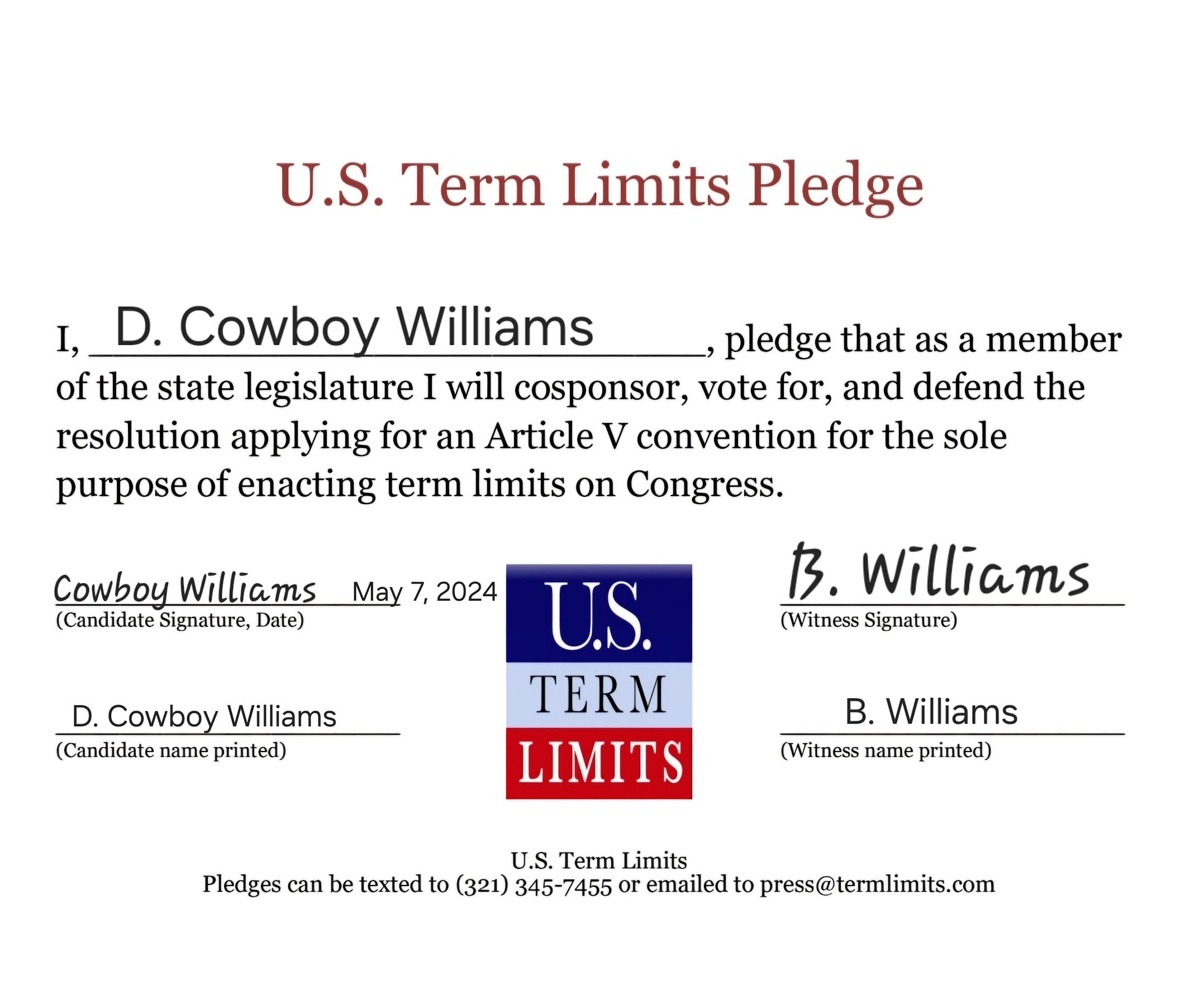 *U.S. Term Limits does not endorse candidates. Candidates who sign the pledge endorse term limits.