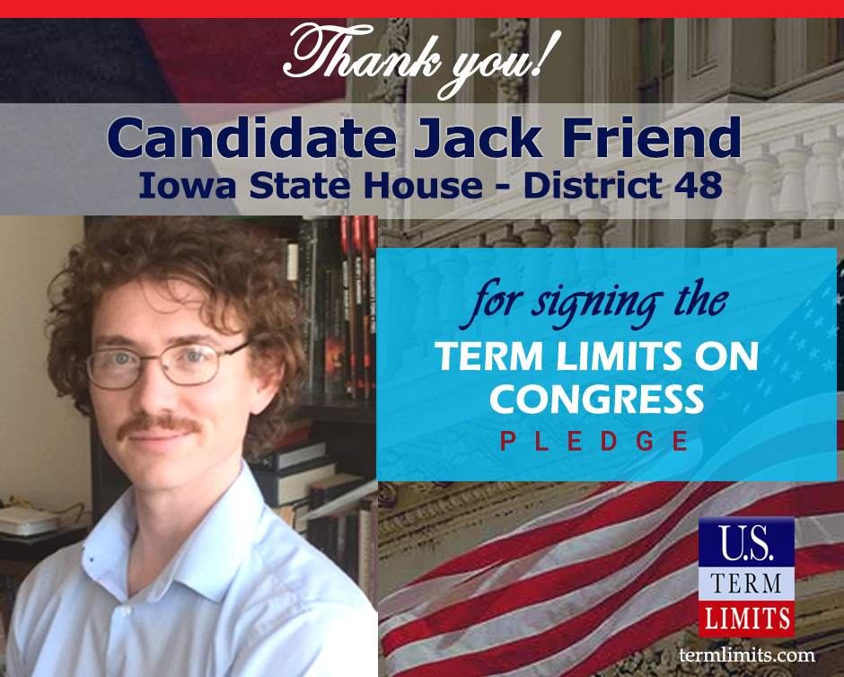 The U.S. Term Limits pledge is provided to candidates and members of state legislatures. It reads, “I pledge that, as a member of the state legislature, I will cosponsor, vote for, and defend the resolution applying for an Article V convention for the limited purpose of enacting term limits on Congress.”