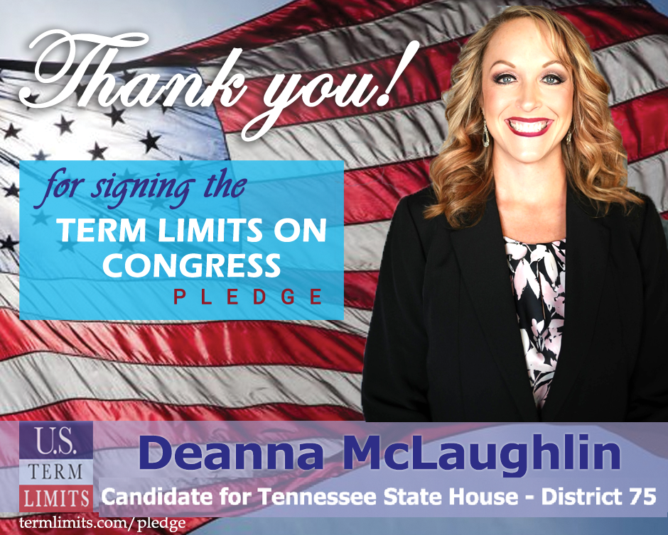 Memphis, TN – U.S. Term Limits (USTL), the leader in the national, non-partisan movement to limit terms for elected officials, is gathering support from state lawmakers across the nation. Its mission is to get 34 states to apply for an amendment proposal convention specific to term limits on Congress. Tennessee state house candidate, Deanna McLaughlin (district 75), has committed support for term limits on Congress by signing the U.S. Term Limits pledge. McLaughlin is the first signer in this race.