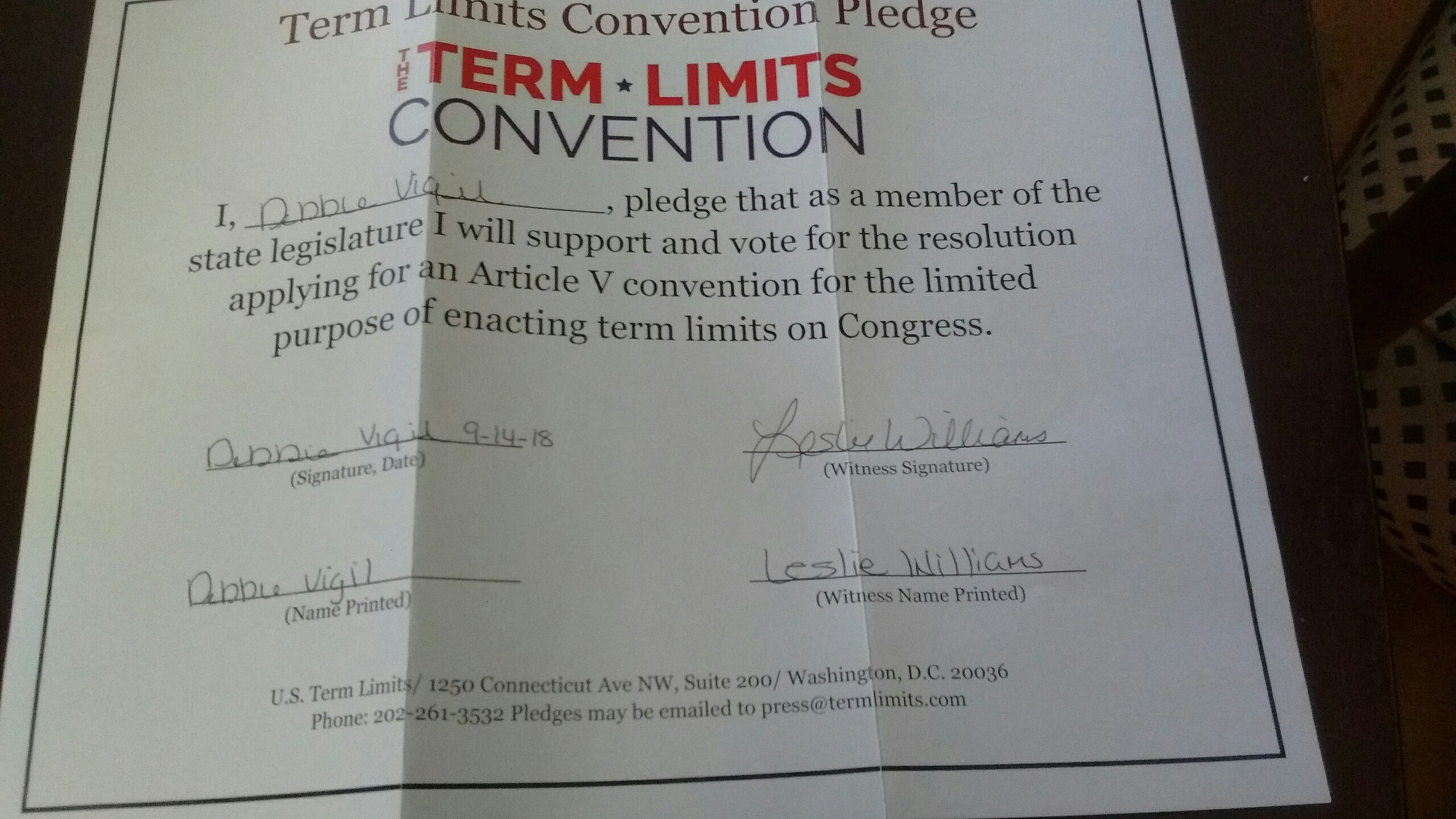 U.S. Term Limits Praises Debbie Vigil for Signing Pledge