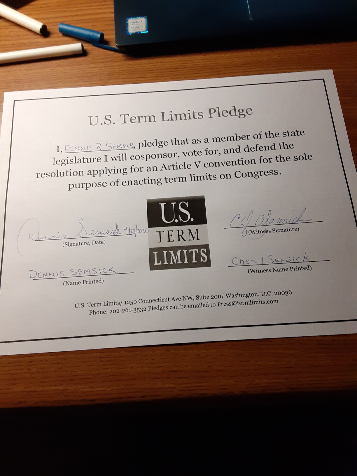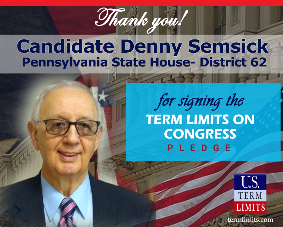 USTL President, Philip Blumel, commented on Semsick’s pledge saying, “Denny’s support of term limits shows that there are individuals who are willing to listen to the majority of voters who want term limits. America needs a Congress that will be served by citizen legislators, not career politicians.”