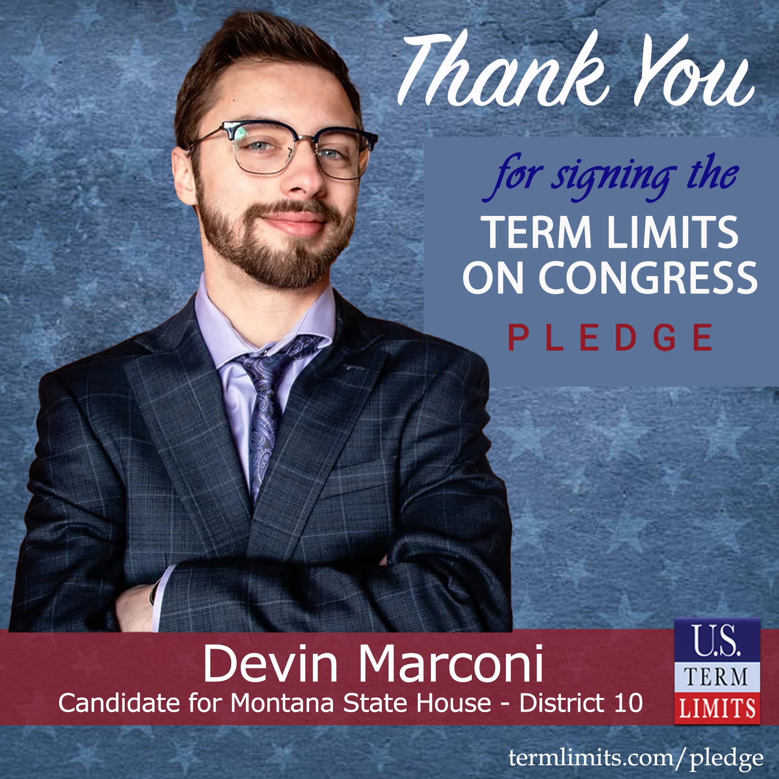 Bigfork, MT – U.S. Term Limits (USTL), the leader in the national, non-partisan movement to limit terms for elected officials, is gathering support from state lawmakers across the nation. Its mission is to get 34 states to apply for an amendment proposal convention specific to term limits on Congress. Montana state house candidate, Devin Marconi (district 10), has committed support for term limits on Congress by signing the term limits convention pledge. Previously, candidate Terry Falk also signed the term limits pledge.