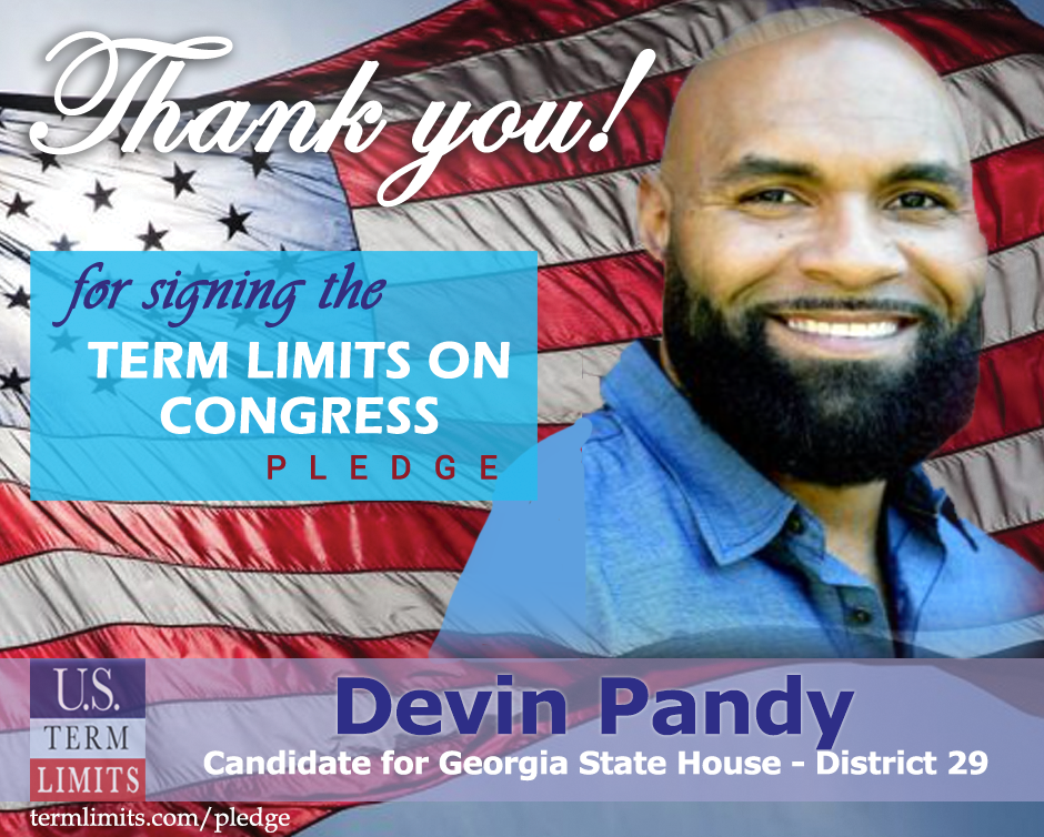 Gainesville, GA– U.S. Term Limits (USTL), the leader in the national, non-partisan movement to limit terms for elected officials, is gathering support from state lawmakers across the nation. Its mission is to get 34 states to apply for an amendment proposal convention specific to term limits on Congress. Georgia state house candidate, Devin Pandy (district 29), has committed support for term limits on Congress by signing the U.S. Term Limits pledge. Pandy is the first signer in this race.