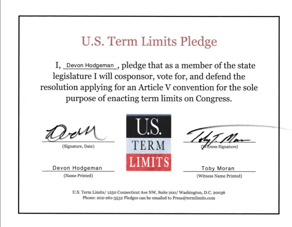 Devon Hodgeman Pledges to Support Congressional Term Limits