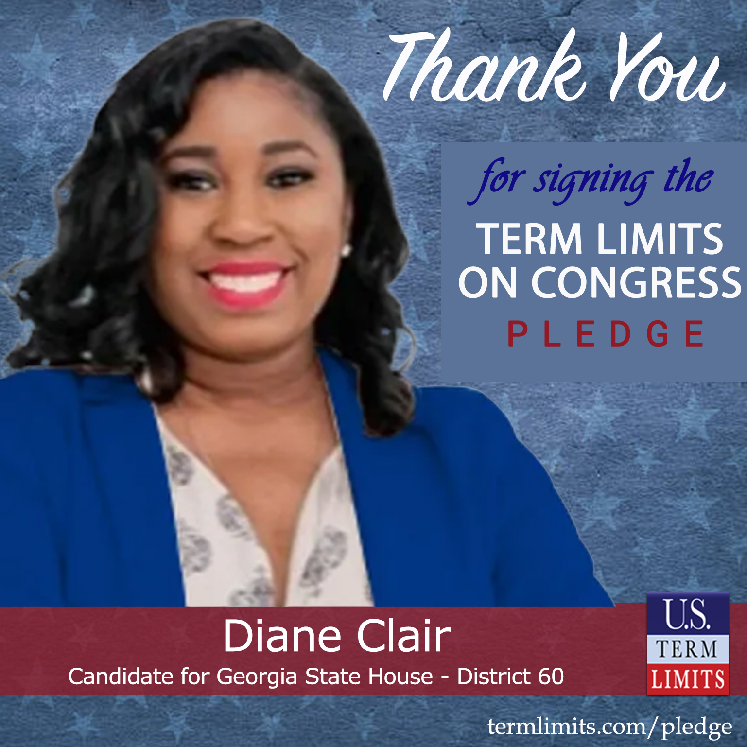 Atlanta, GA – U.S. Term Limits (USTL), the leader in the national, non-partisan movement to limit terms for elected officials, is gathering support from state lawmakers across the nation. Its mission is to get 34 states to apply for an amendment proposal convention specific to term limits on Congress. Georgia state house candidate, Diane Clair (District 60), has committed support for term limits on Congress by signing the term limits convention pledge. Clair is the first signer in this race.