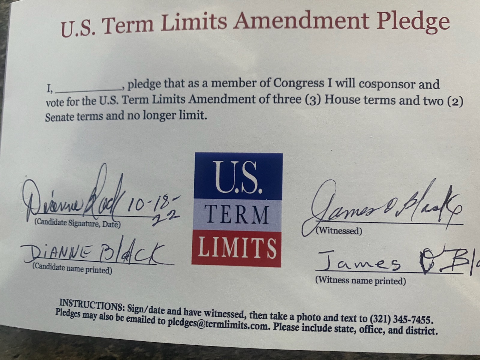 Dianne Black Pledges to Support Term Limits on Congress