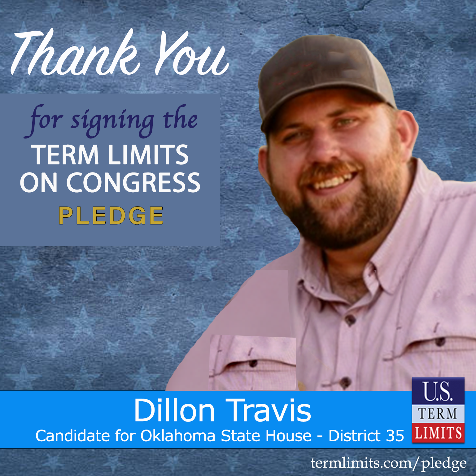 Pawnee, OK – U.S. Term Limits (USTL), the leader in the national, non-partisan movement to limit terms for elected officials, is gathering support from state lawmakers across the nation. Its mission is to get 34 states to apply for an amendment proposal convention specific to term limits on Congress. 2025 Oklahoma state house special election candidate, Dillon Travis (district 35), has committed support for term limits on Congress by signing the term limits convention pledge. Previously, candidate Kevin Wright also signed the pledge. The special primary election is scheduled for December 9, 2025.