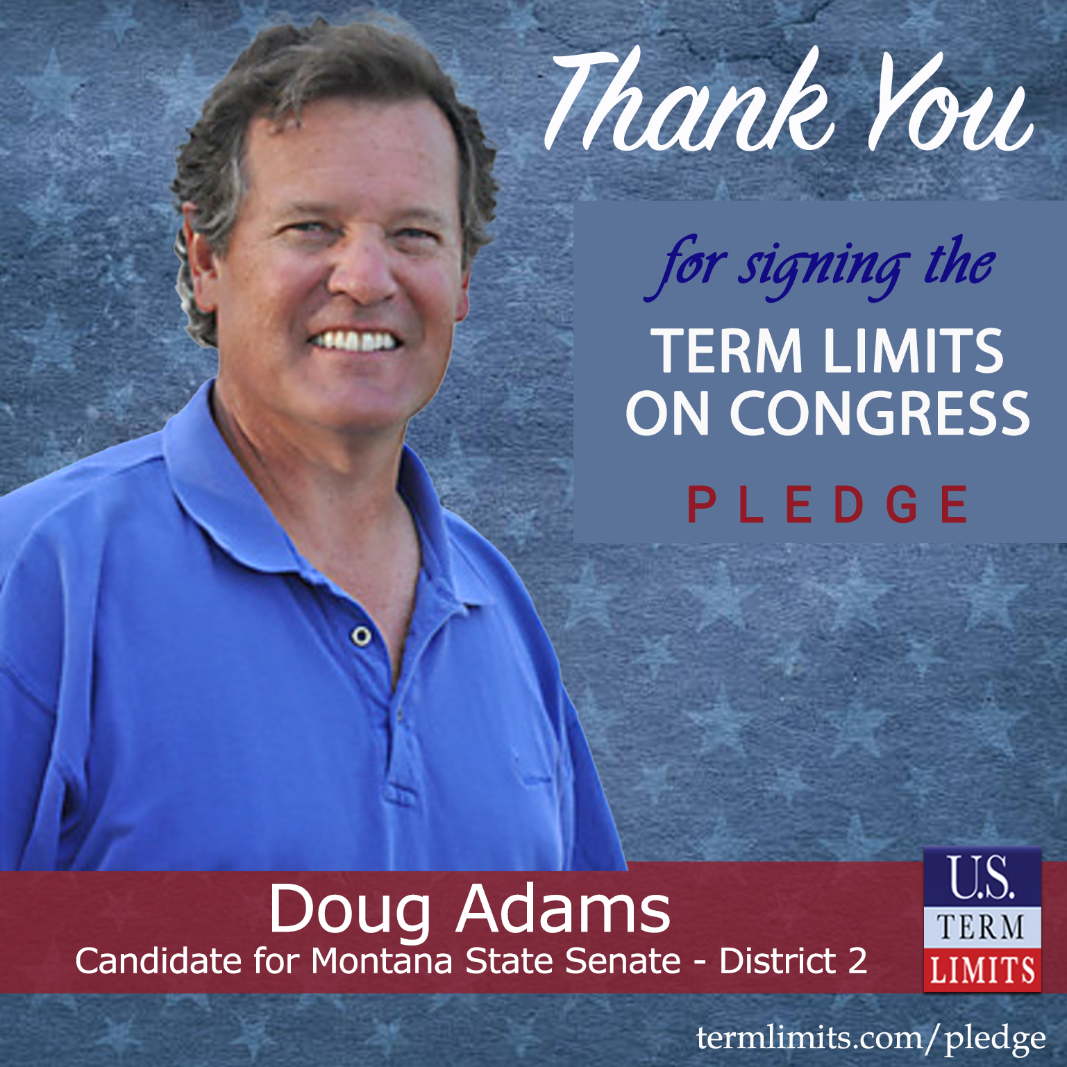 West Glacier, MT – U.S. Term Limits (USTL), the leader in the national, non-partisan movement to limit terms for elected officials, is gathering support from state lawmakers across the nation. Its mission is to get 34 states to apply for an amendment proposal convention specific to term limits on Congress. Montana state senate candidate, Doug Adams (district 2), has committed support for term limits on Congress by signing the term limits convention pledge.