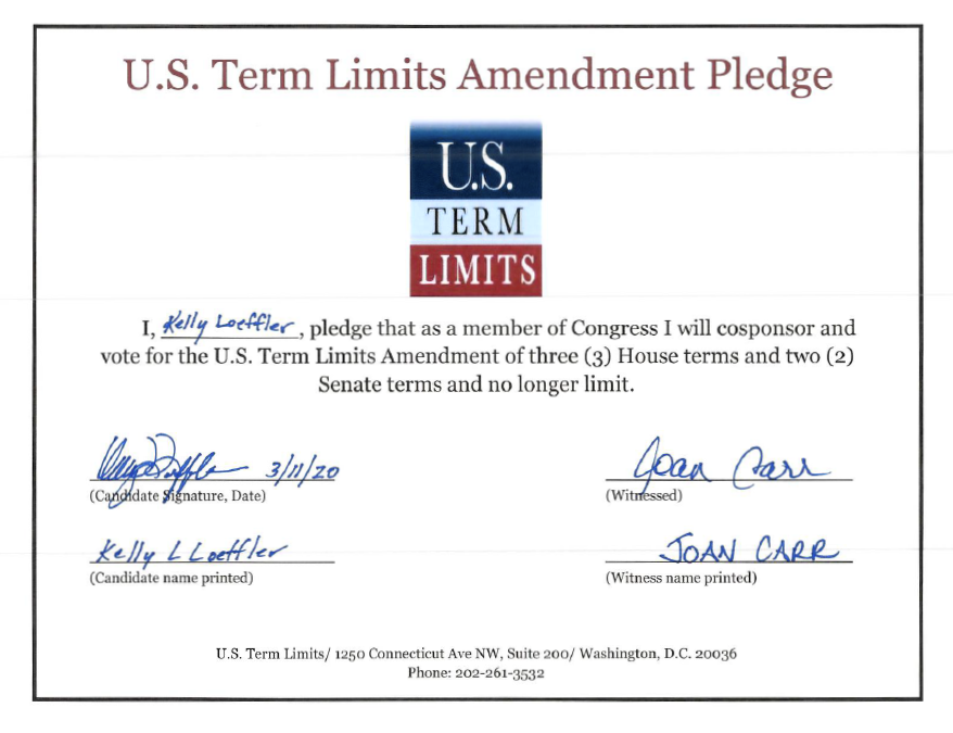 U.S. Term Limits has the support of more than 70 pledge signers in Congress. USTL President Philip Blumel commented on Collins’s and Loeffler’s pledges saying, “This strong support of term limits shows that there are individuals who are willing to put self-interest aside to follow the will of the people. America needs a Congress that will be served by citizen legislators, not career politicians.”