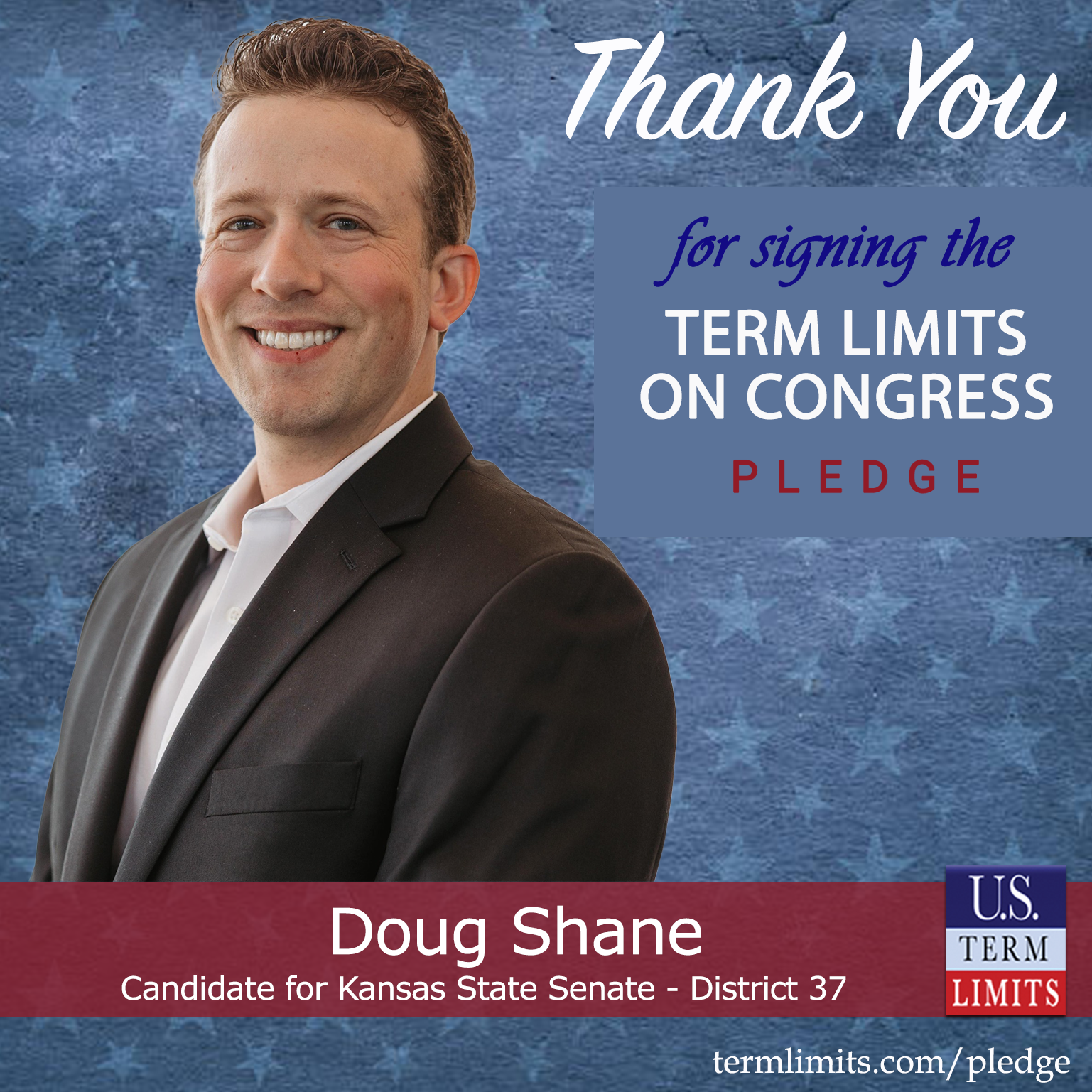 Louisburg, KS – U.S. Term Limits (USTL), the leader in the national, non-partisan movement to limit terms for elected officials, is gathering support from state lawmakers across the nation. Its mission is to get 34 states to apply for an amendment proposal convention specific to term limits on Congress. Kansas state senate candidate, Doug Shane (District 37), has committed support for term limits on Congress by signing the term limits convention pledge.