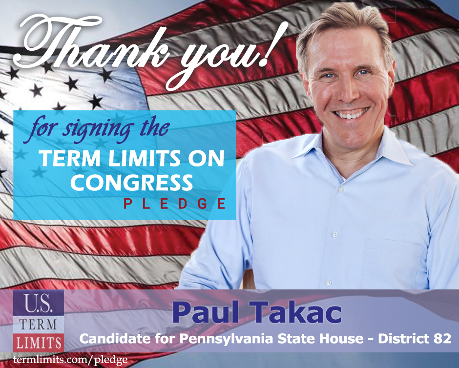 The U.S. Term Limits Pledge is provided to candidates and members of state legislatures. It reads, “I pledge that, as a member of the state legislature, I will support and vote for the resolution applying for an Article V convention for the limited purpose of enacting term limits on Congress.”