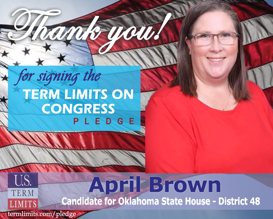 The U.S. Term Limits pledge is provided to candidates and members of state legislatures. It reads, “I pledge that, as a member of the state legislature, I will cosponsor, vote for, and defend the resolution applying for an Article V convention for the limited purpose of enacting term limits on Congress.”